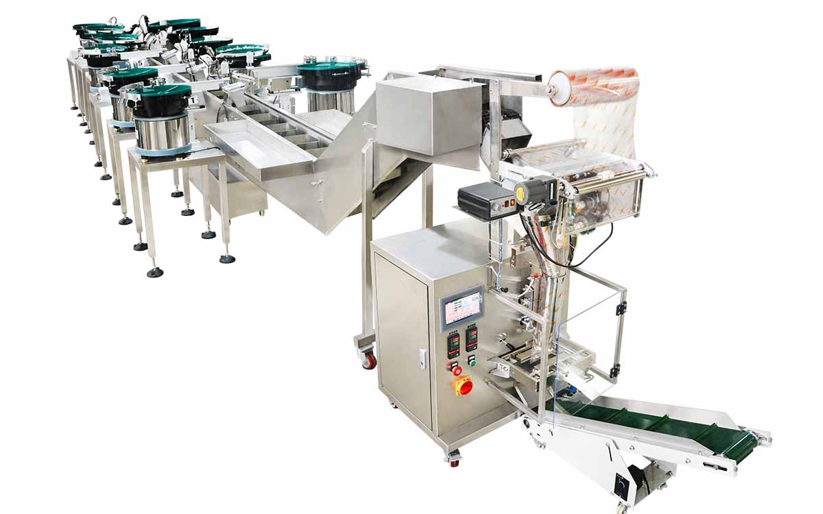 五金分揀包裝機的作用是什么五金分揀包裝機是針對各行業(yè)多種五金螺絲配件的分揀包裝系統(tǒng),五金分揀機一般是指用于五金行業(yè)的一種包裝機械設備,常見的有五金螺絲包裝機,五金家具螺絲包裝機,五金配件分揀機,甚至更多五金緊固件,汽配零部件,玩具配件等行業(yè)也在運用,五金分揀機大致意思就是各種各樣不同的五金配件、緊固件等零件在一條線上實現(xiàn)自動下料,計數或稱重,包裝,打碼,分割等分揀出來并且包裝好,通常是多盤的情況下