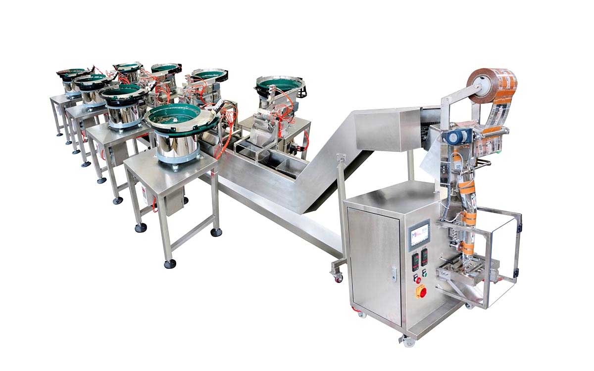 螺絲包裝機是能主動分揀、計數(shù)、包裝螺絲、螺母等異形產(chǎn)五金品的機械設(shè)備。其功用結(jié)構(gòu)主要由料斗、底盤、PLC操控體系、光纖計數(shù)體系、氣動設(shè)備等組成振動盤,當(dāng)振動盤的電磁線圈工作時,因為電磁吸力的效果,斜面上下幅度較小。經(jīng)過調(diào)整振蕩盤的作業(yè)頻率和間隙,能夠完成平穩(wěn)運行。振動電磁鐵原理:選用電磁鐵產(chǎn)生的交變磁場。振蕩部分是懸掛在電磁鐵前面的鐵片。當(dāng)信號經(jīng)過電磁鐵時,電磁鐵的磁場會發(fā)生變化,使鐵皮振動并發(fā)出