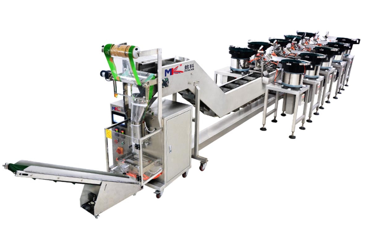 廣東銘科MKL-LS10五金螺絲計數(shù)包裝機廣泛應(yīng)用于電子、電器、燈飾、家具、緊固件行業(yè)和五金建材制造工業(yè)附屬安裝螺絲的自動計數(shù)包裝。該螺絲自動包裝機采用PLC控制,包裝過程中自動實現(xiàn)化。螺絲自動包裝機設(shè)備能實現(xiàn)對物料自動排列、自動計數(shù)、填充、封口、包裝、打印標(biāo)簽、成品輸送一次完成。銘科MKL-LS10五金螺絲計數(shù)包裝機圖片:銘科MKL-LS10五金螺絲計數(shù)包裝機技術(shù)特點介紹:本機采用7英寸彩色觸摸